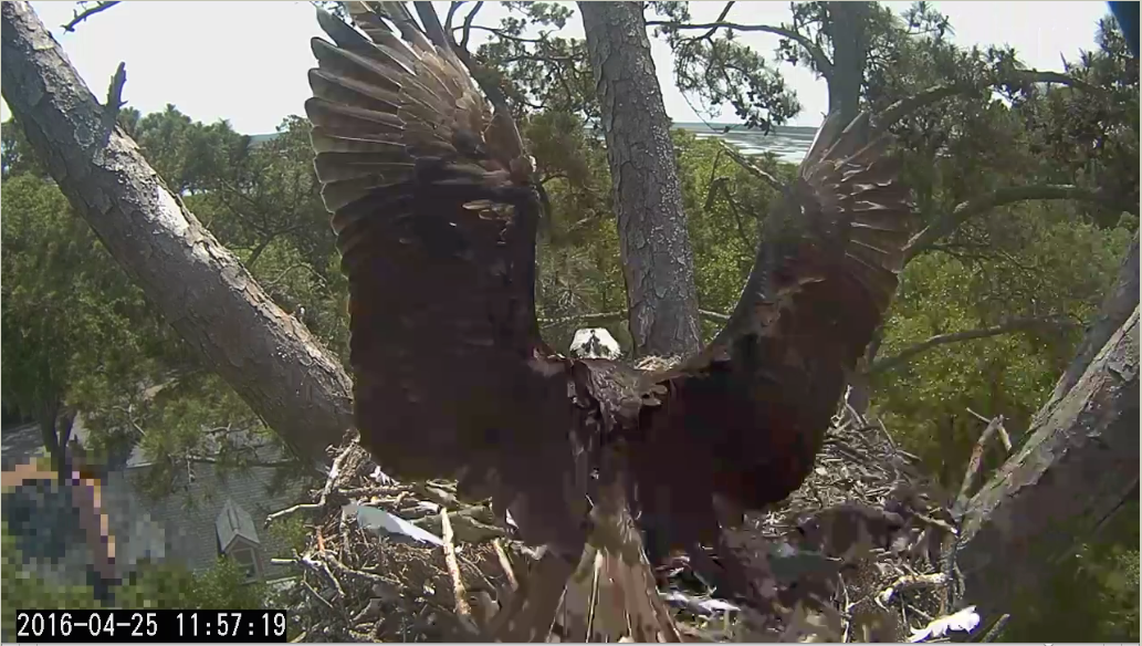 However, today (Monday) at noon, a couple of Ospreys showed up andScreen Shot 2016-04-25 at 6.31.05 PM spent about 40 minutes checking out the view. This also is similar to last year, as the following goldie-oldie post shows. To the right are today’s photos as first one, then