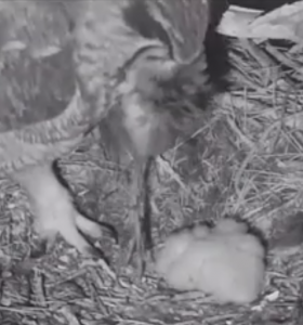 At 6:15 this morning, 2/7, Mom brought a prey item back to the nest. With its long legs and really long toes, I suspect this was another rail – the long toes