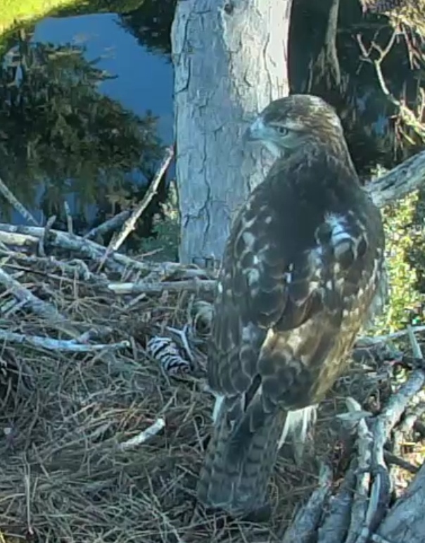 RTH_2Then yesterday morning, a red tailed hawk was apparently interested in the nest, for the great view and the proximity to the fully stocked sushi bar out in the channels in the marsh.