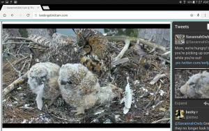 Home > Uncategorized Dinner Yum!!! Good to the last feather! Patty Frothingham Categories:Uncategorized Patty Frothingham Twitter Facebook Youtube Related Posts Uncategorized Three AM Snack Uncategorized Multipurpose Nest, Multipurpose Social Media Names Uncategorized Mom Feeds Hungry Owlet on Windy, Raining Morning Uncategorized Noises heard from the nest area Uncategorized Everything old is new again! Uncategorized Did I get the wrong Street? 2 Responses Comments 2 Pingbacks 0 Oh good! Love to see they had food! Thanks for the photo!! Did anyone else see the owlet swallow the whole mouse and mom pull it back up this morning??? Wow! Prev Post Fluff Ball Turns into Great Horned Owl! Next Post A Lazy Tuesday Morning